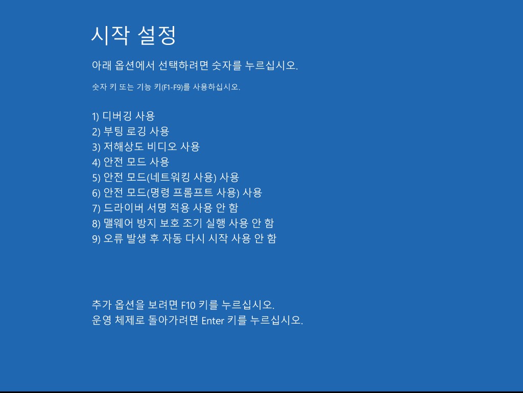 목록 중 숫자키 4번을 클릭하여 안전모드에 진입합니다.