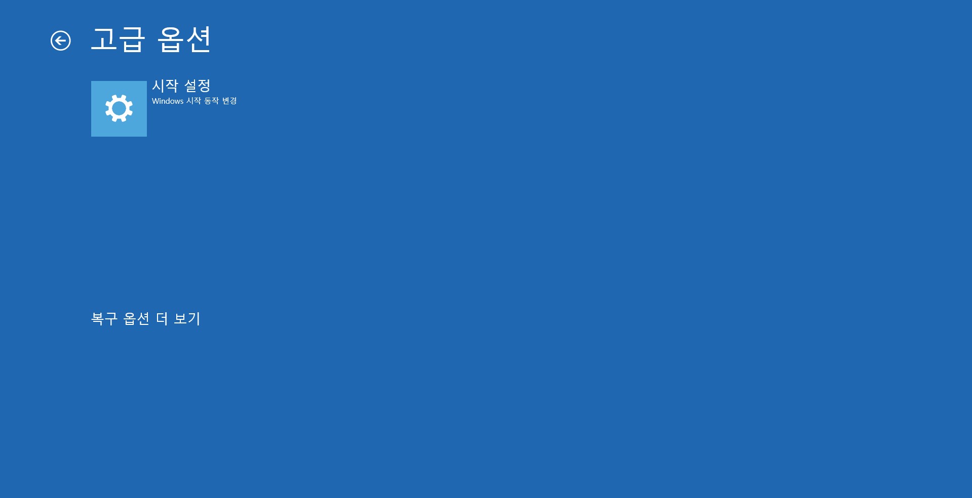 복구 옵션 더 보기를 눌렀을 때 시작 설정을 클릭합니다.