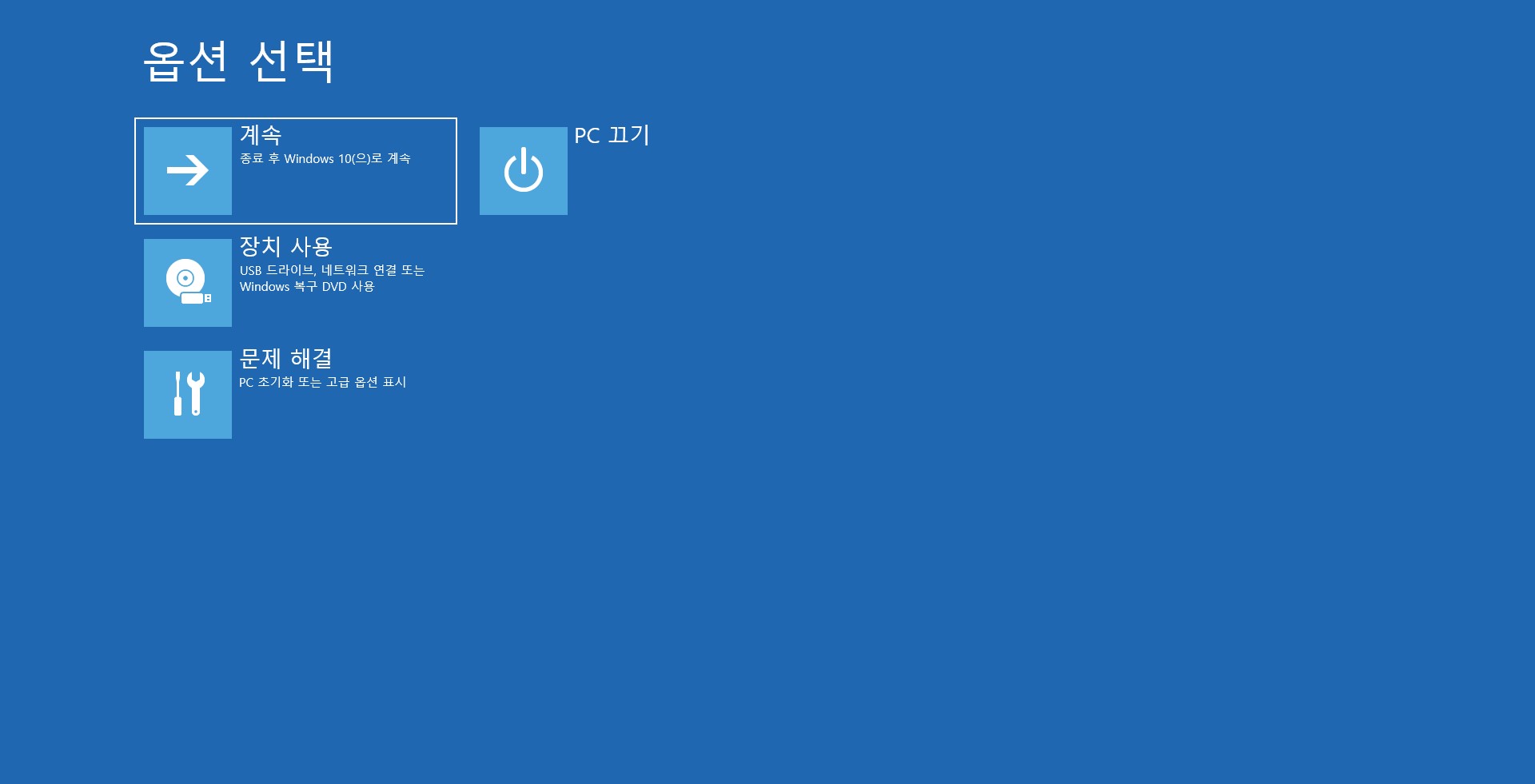 시작 - 다시 시작을 Shift를 누른 상태로 다시 시작을 클릭합니다.