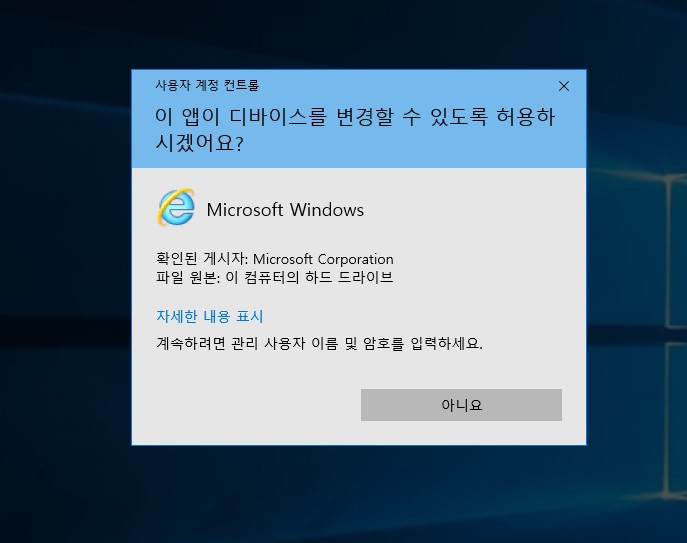 윈도우를 사용하다. 관리자 실행으로 실행할 경우 "예" 버튼이 없거나 비활성화되어있습니다.