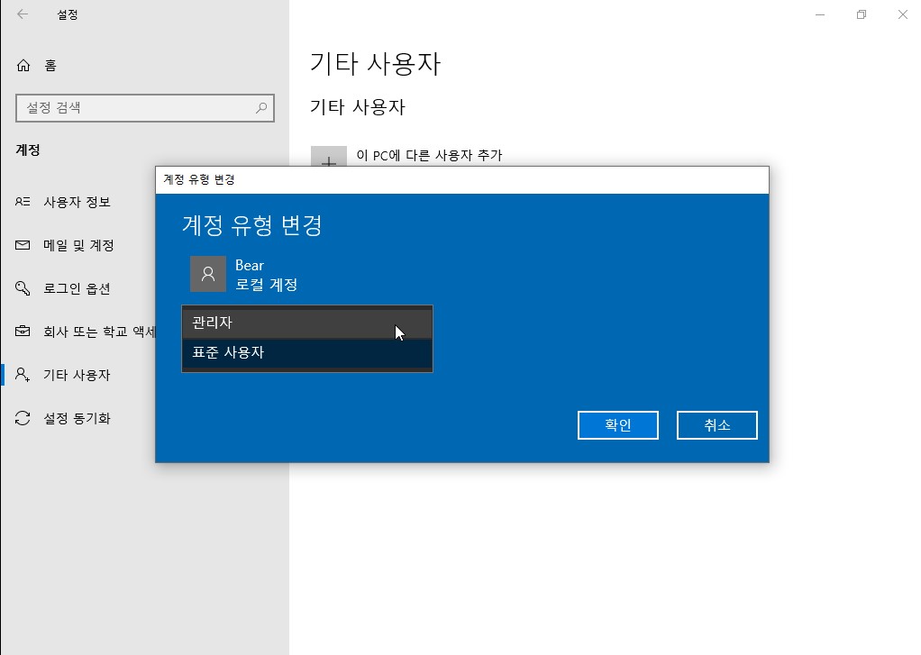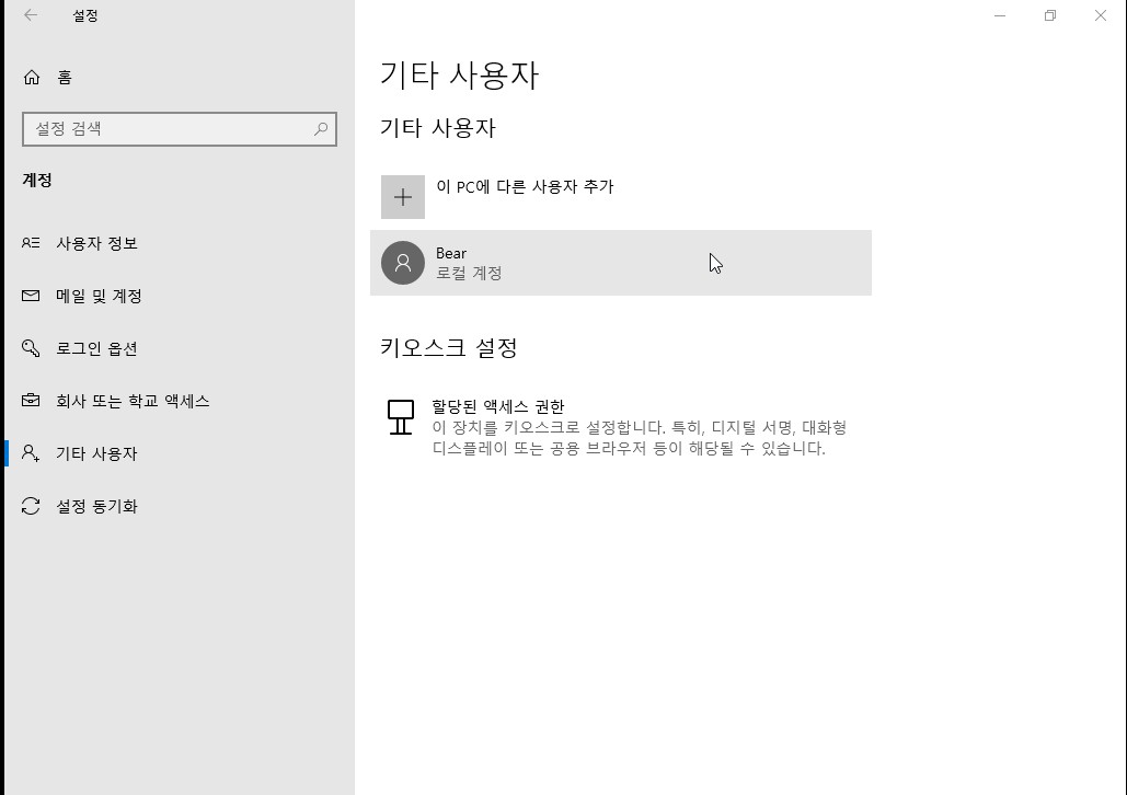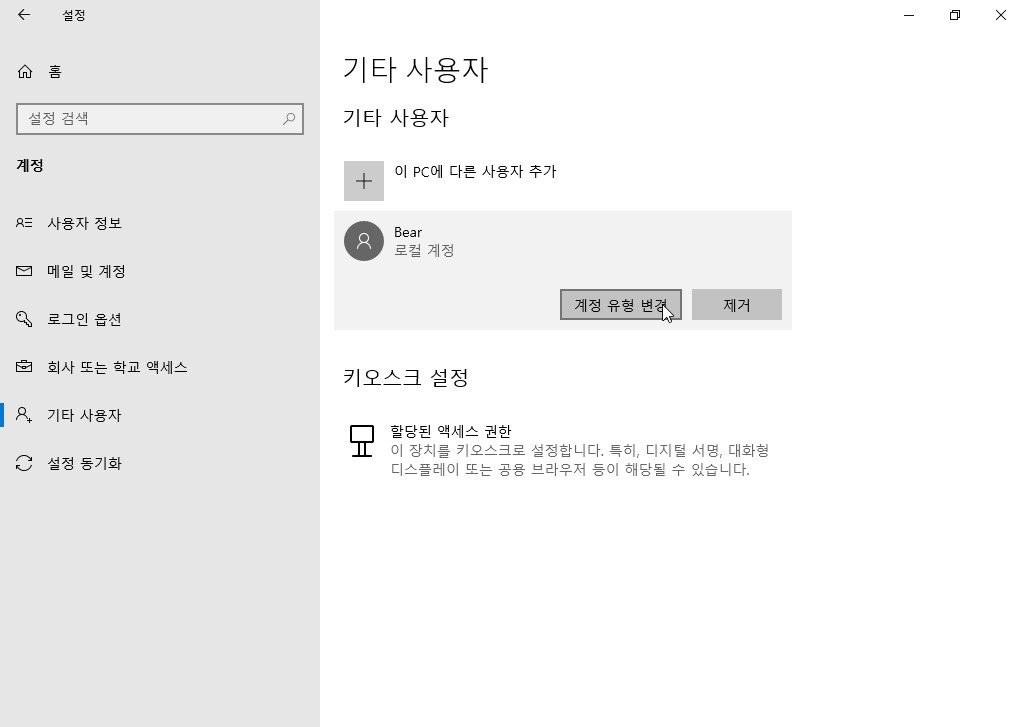 설정 - 계정 - 기타 사용자로 이동한 후 문제가 발생했던 계정을 클릭합니다.