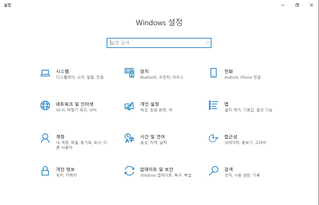 Administrator 계정으로 로그인한 후 설정(Windows키 + i키)에 진입합니다.